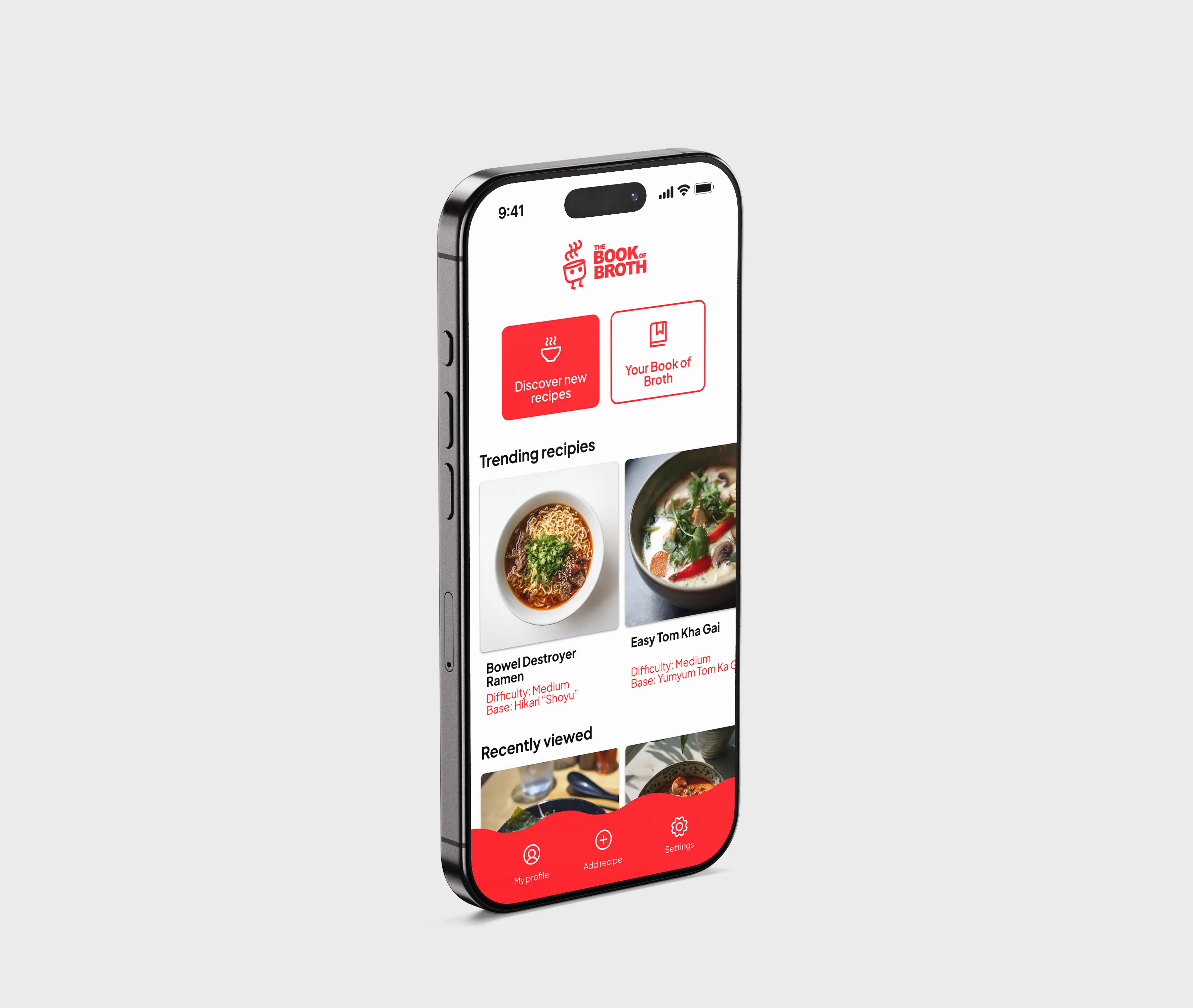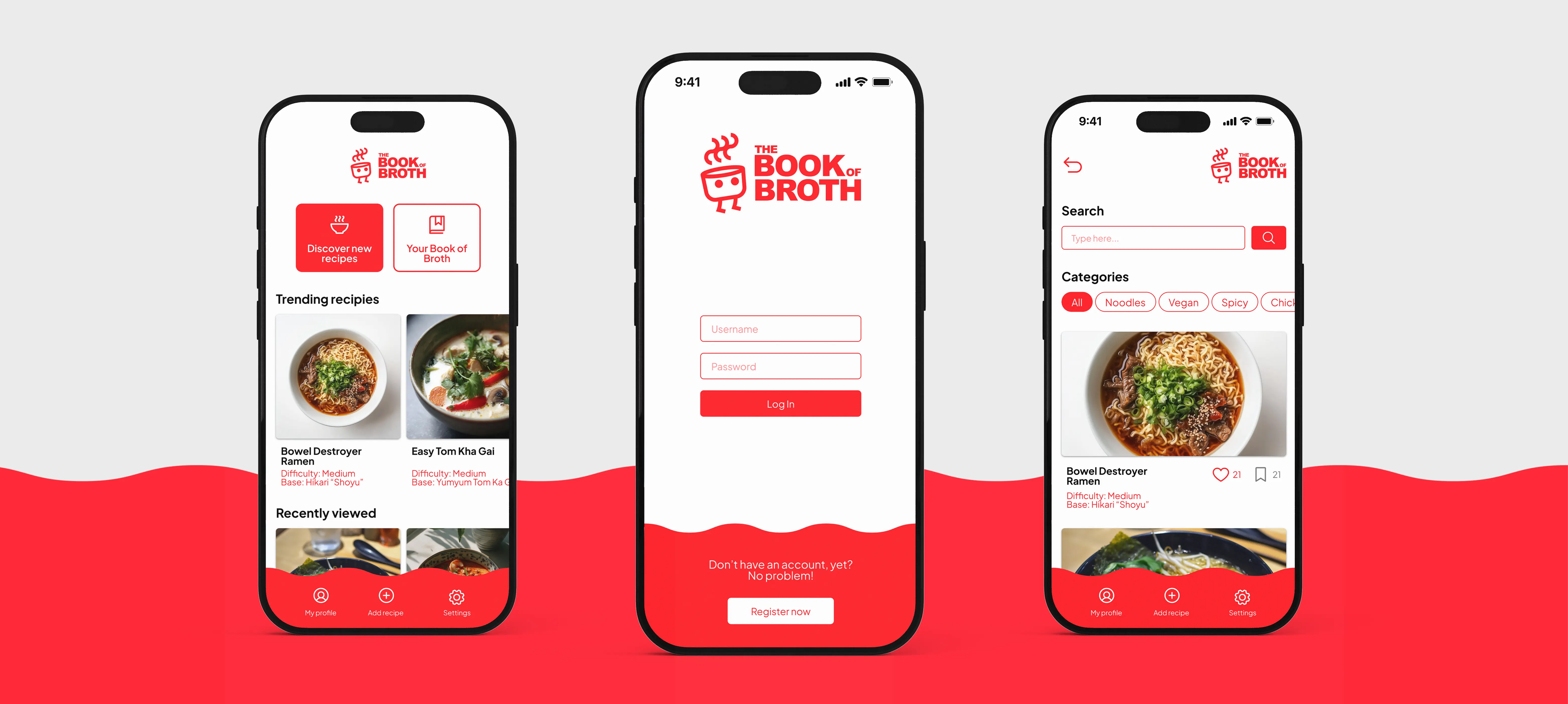 The Book of Broth ist eine UX/UI-Case Study über eine Plattform zum Entdecken und Teilen kreativer Instant-Suppen-Rezepte – schnell, simpel und alltagstauglich.