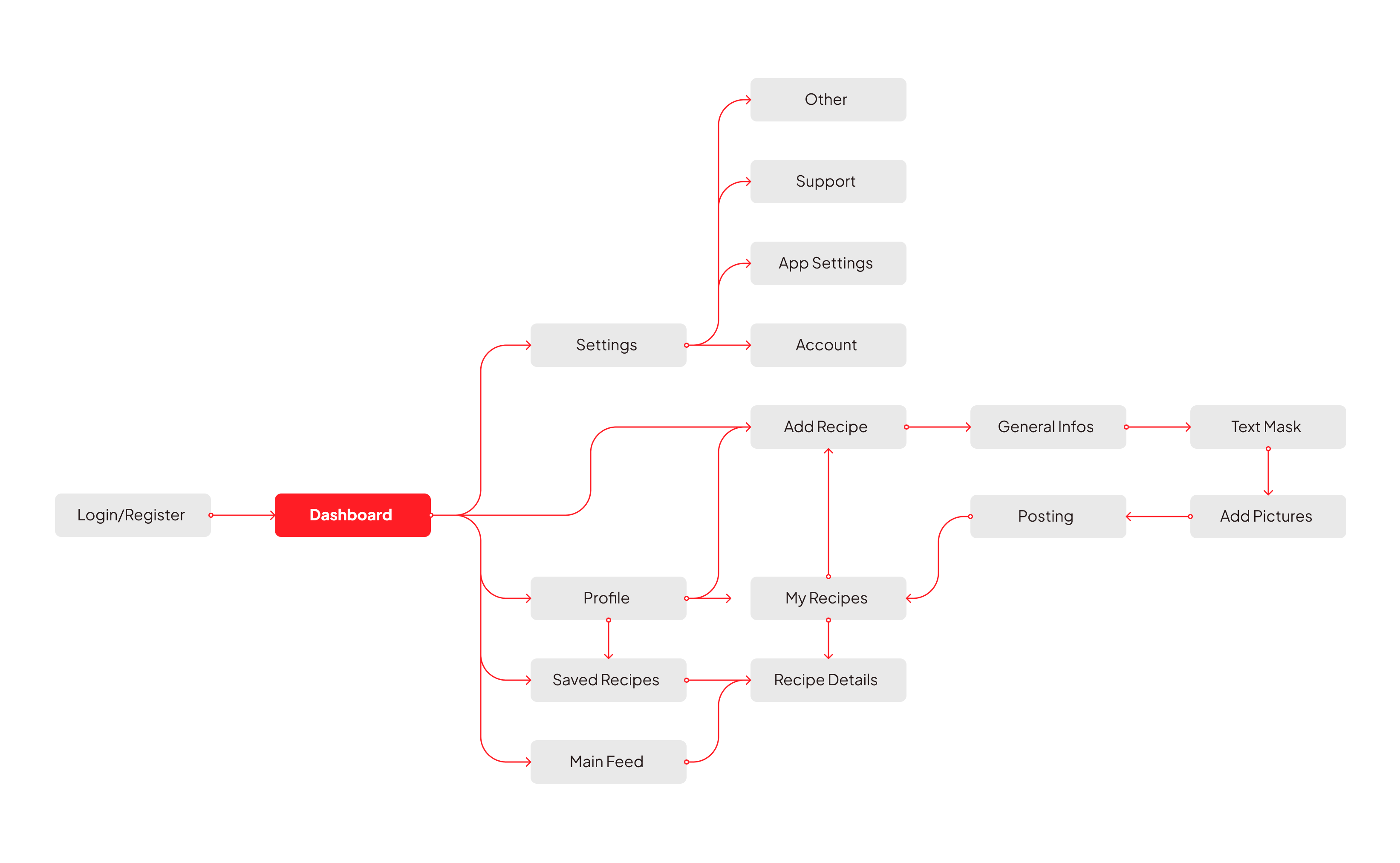 Im Rahmen der Case Study lag der Fokus auf einem klaren, nutzerzentrierten Interface. Ein reduziertes Design lenkt den Blick auf das Wesentliche: die Rezepte der Community.